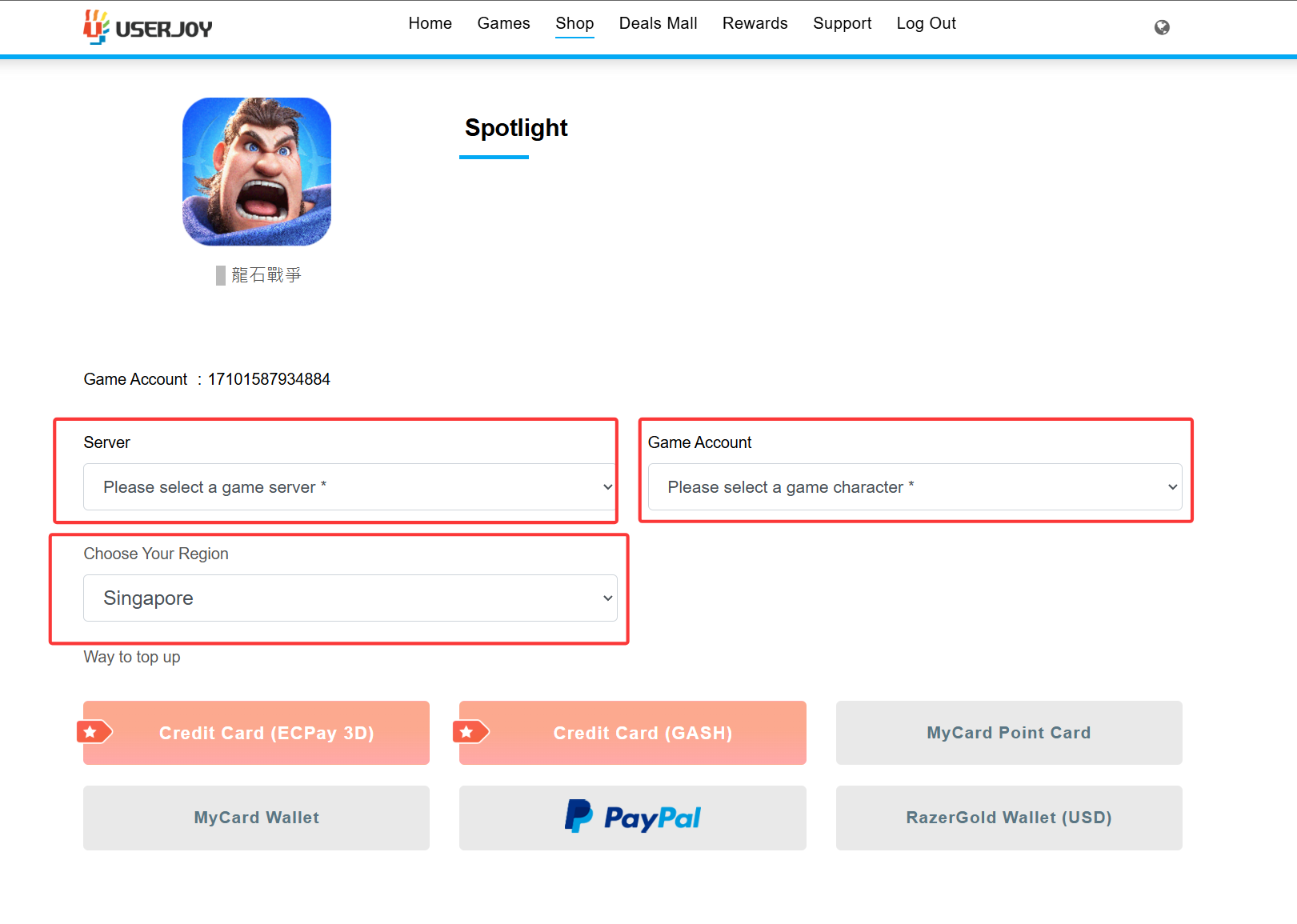 Step 3: Select your [Server], [Character], [Region], and [Top-up Method].