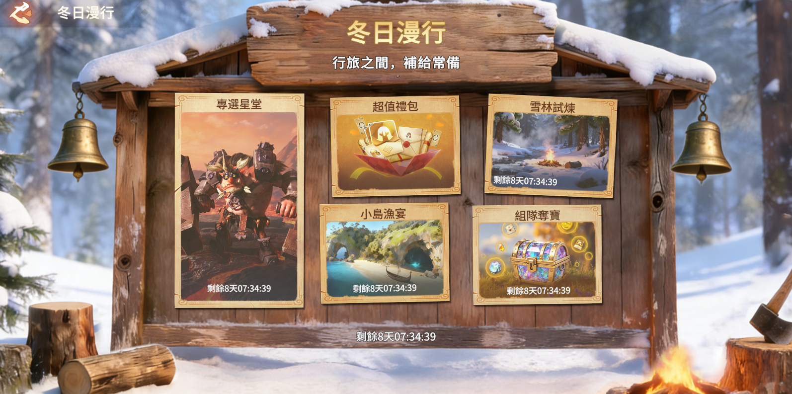 活動簡介:專選星堂、超值禮包、雪林試煉、小島魚宴、組隊奪寶共計5個子活動